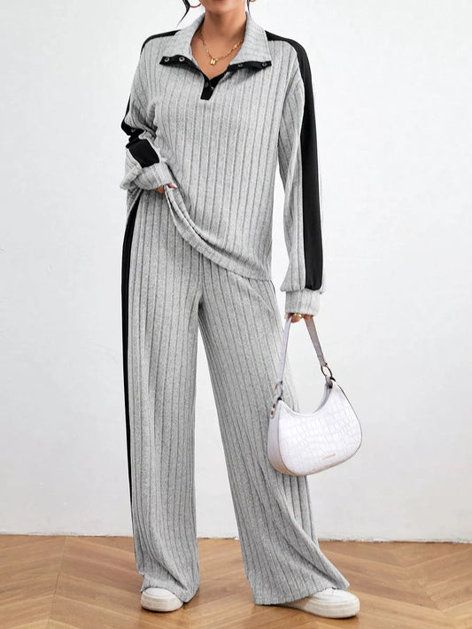 Ribbed Contrast Dropped Shoulder Top & Pants Co-ord Set