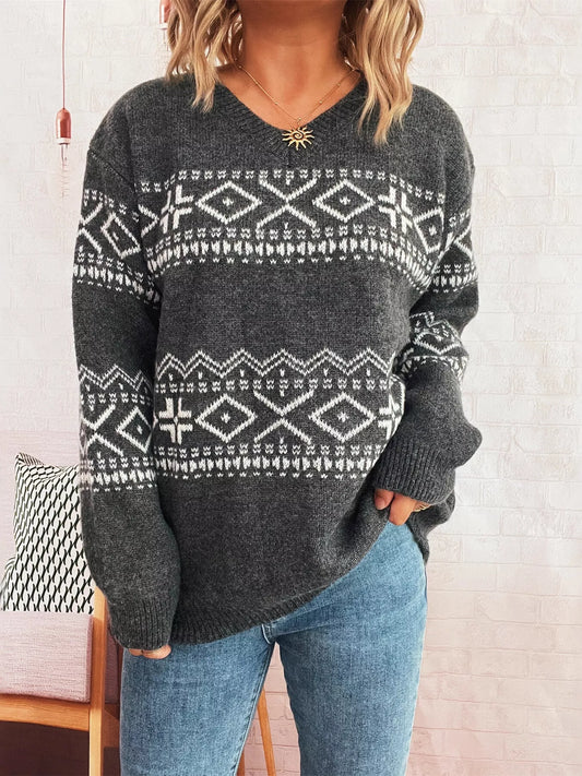 Geometric Print Dropped Shoulder Long Sleeve Sweater