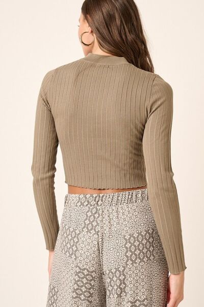 Mittoshop Mock Neck Long Sleeve Crop Knit Top