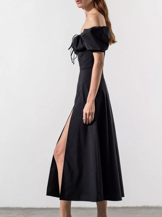 Full-Size Ruched Tie-Waist Slit Midi Dress